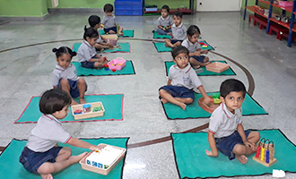 A Montessori class is not a classroom but an environment by itself. The ambience is unique as children irrespective of age (3 to 6) bond together without discrimination. They mingle and engage in many activities with mutual respect and love.