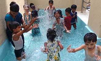 Children can have an amazing time splashing in knee-deep, safe and friendly pools at Chitrakoota Montessori. All this under the ever-watchful eyes of our vigilant teachers. Safety standards are strictly implemented.